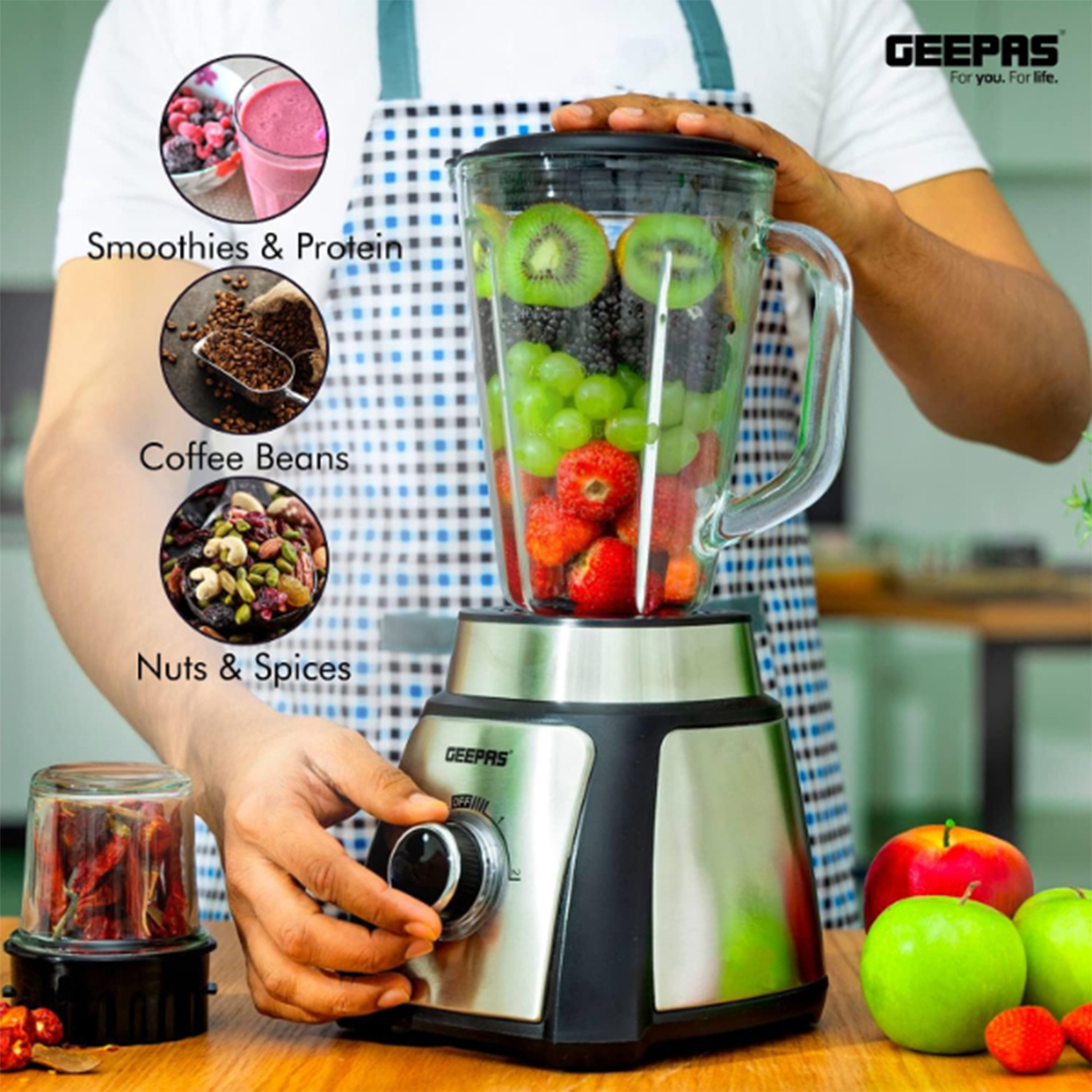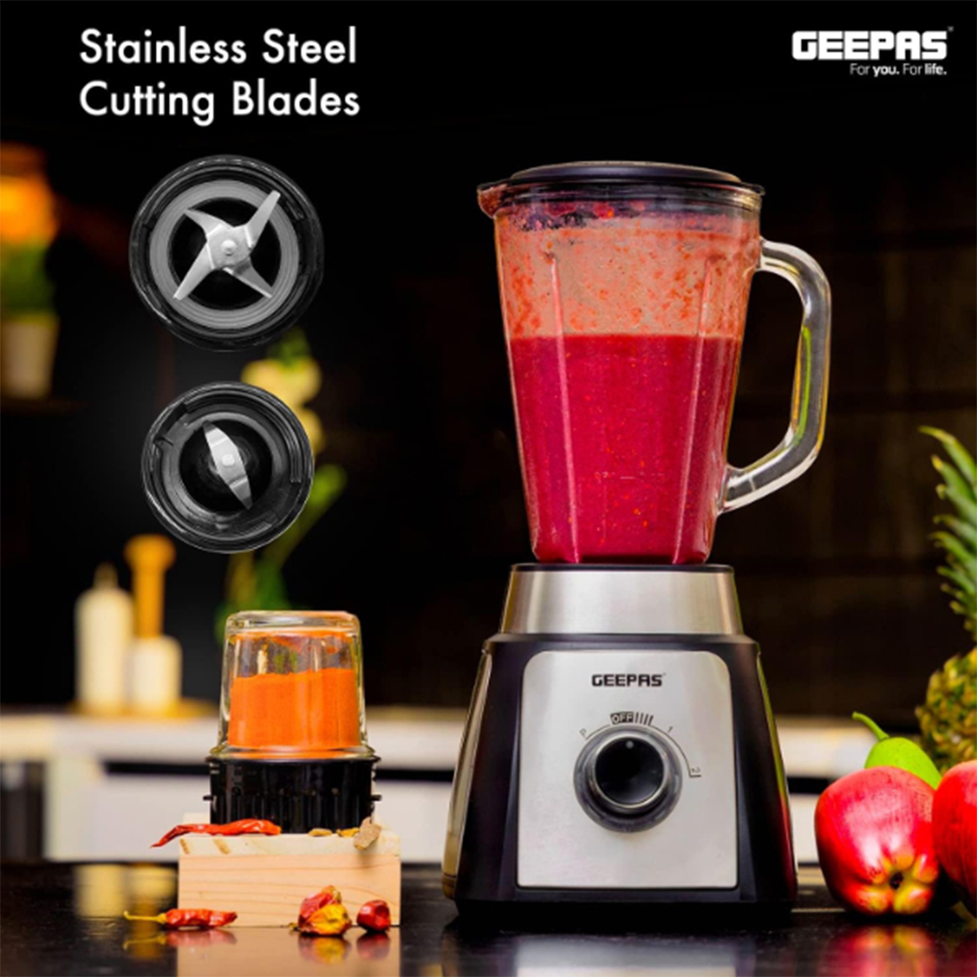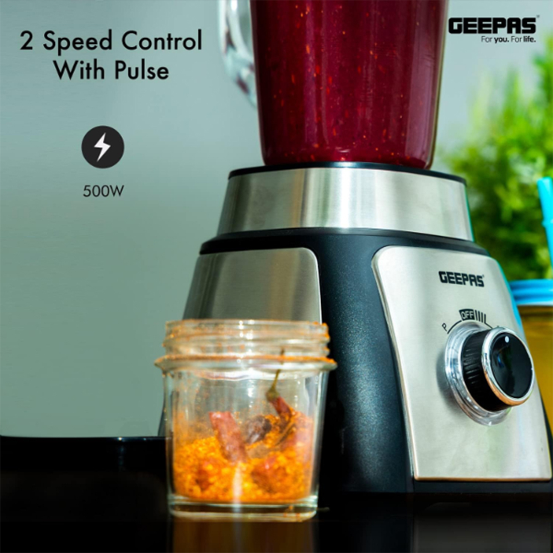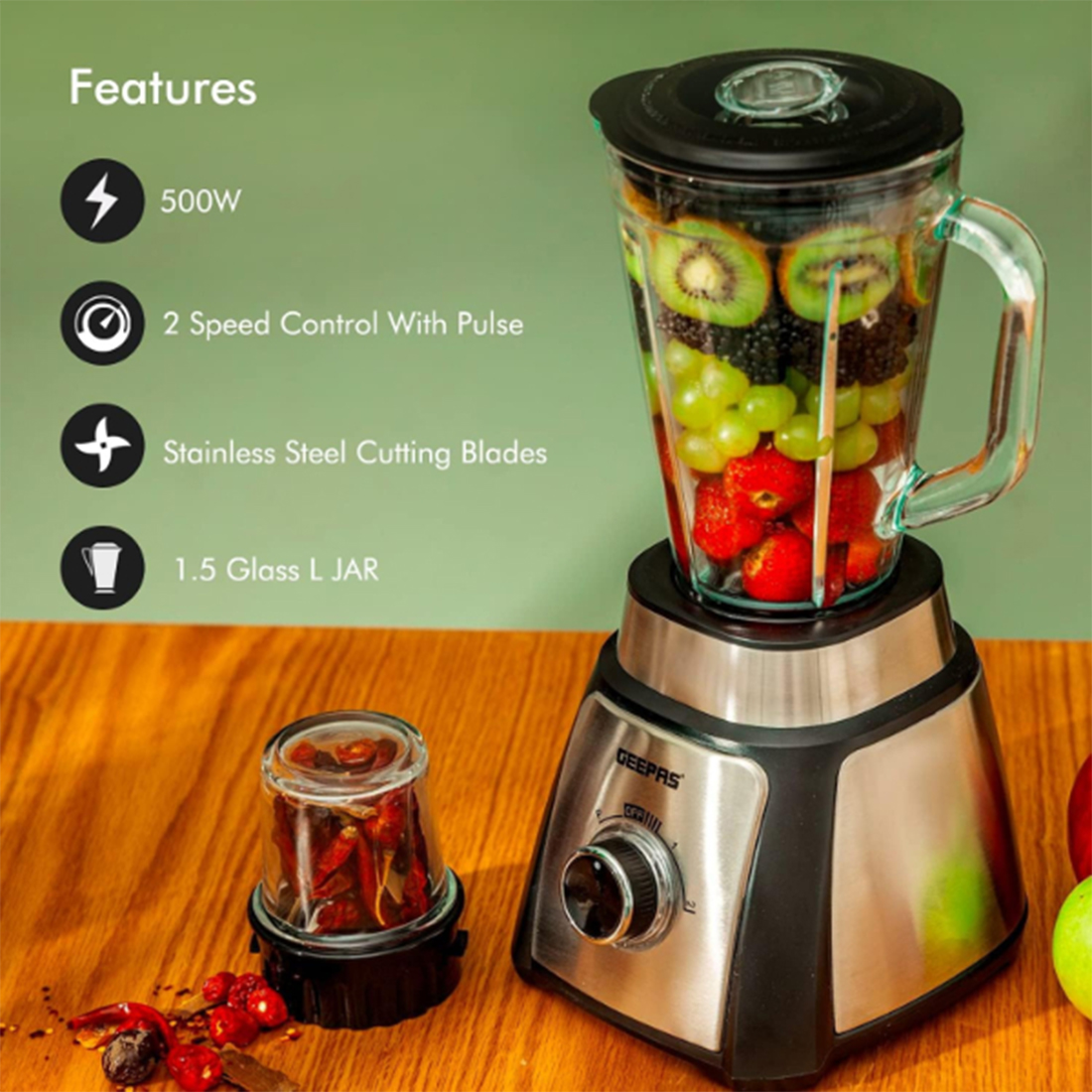 Mixeur de jus 2 en 1 en acier inoxydable GSB44076 est un équipement d’appareils de cuisine sous la marque GEEPAS Electronics.