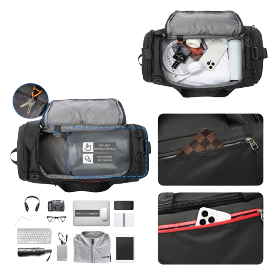 Sac De Voyage / Sac Sport Avec Plusieurs Compartiments, Facile à répondre aux courts voyages d’affaires et aux besoins de voyage